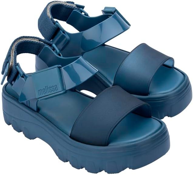 Melissa Kick Off Platform Sandals for Women – Super Soft and Flexible Vegan Chunky Platform Sandal with Adjustable Straps and Open Toe Design(Blue/Blue)