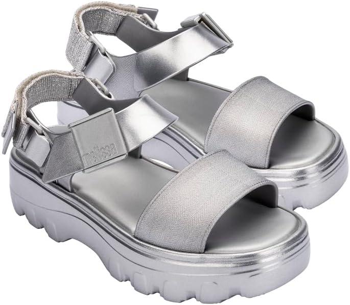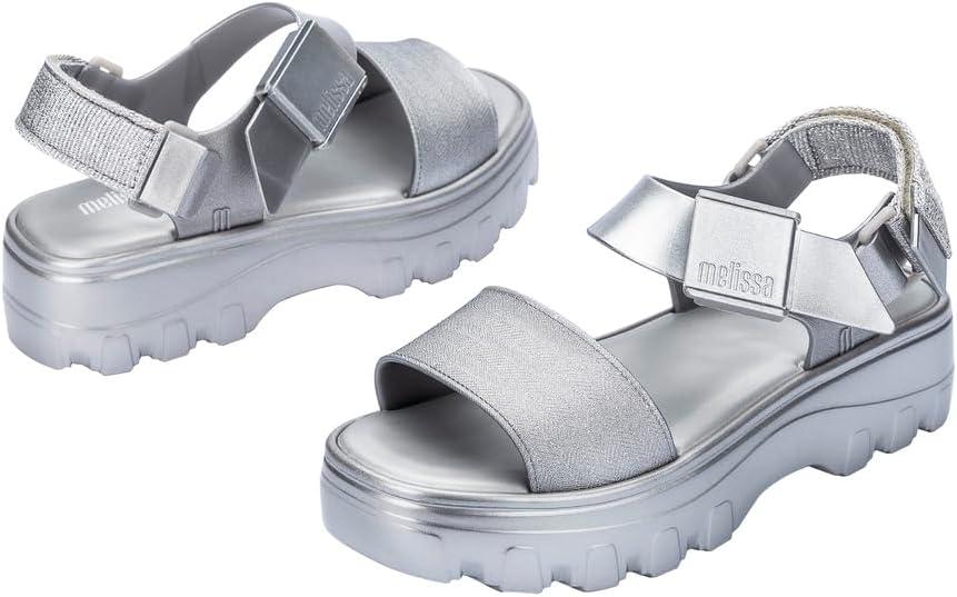 Melissa Kick Off Platform Sandals for Women – Super Soft and Flexible Vegan Chunky Platform Sandal with Adjustable Straps and Open Toe Design(Silver)
