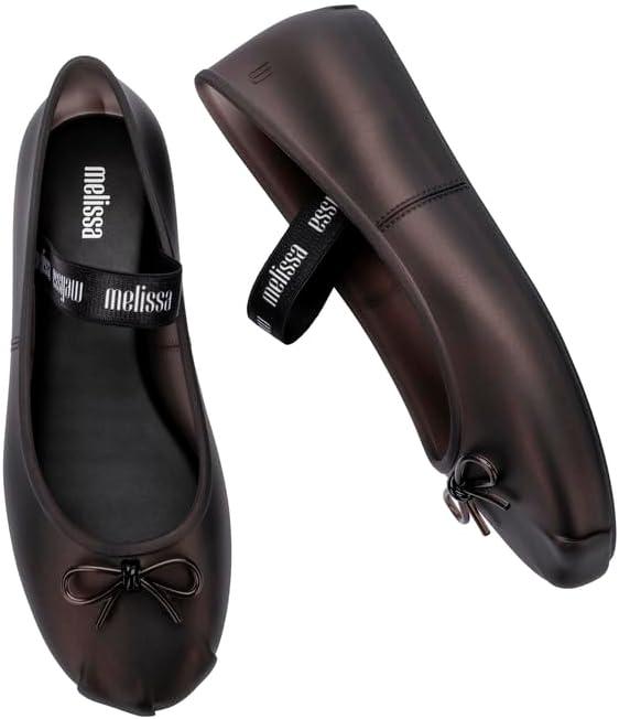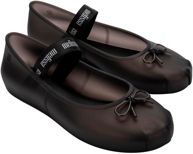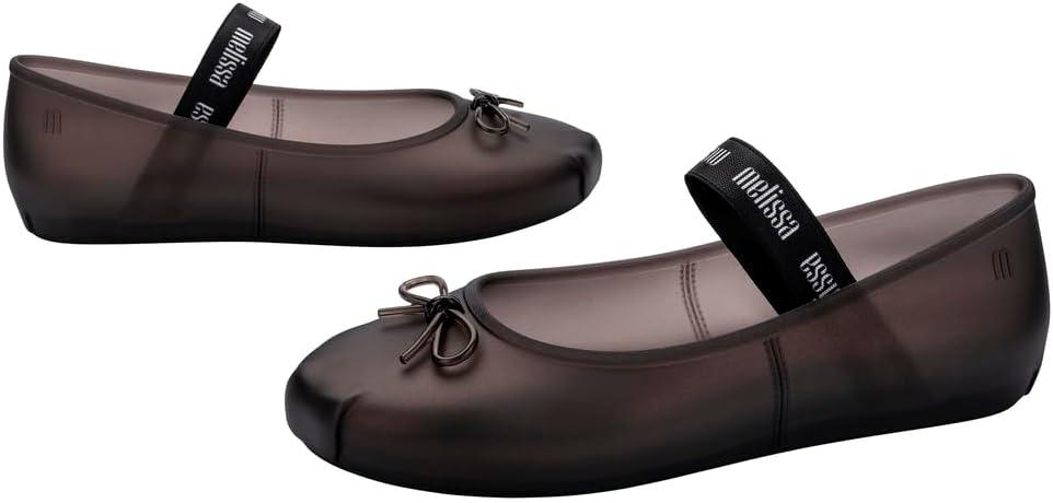 Melissa Sophie Jelly Flats for Women – Ballet Flats for Women Bow Applique & Strap, Slip-on Closed-Toe Women’s Jelly Shoes(Pearly Black)