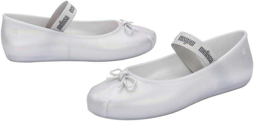 Melissa Sophie Jelly Flats for Women - Ballet Flats for Women Bow Applique & Strap, Slip-on Closed-Toe Women’s Jelly Shoes(Pearly White)