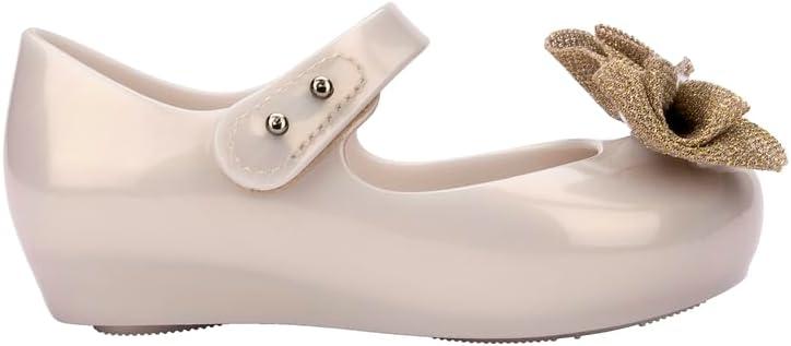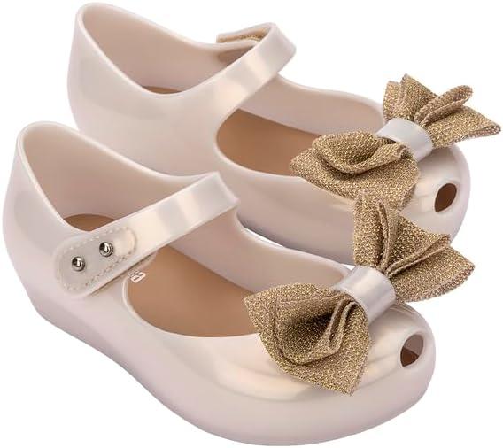 mini melissa Ultragirl Collection Mary Jane Flats for Toddlers and Babies – Comfortable & Cute Peep Toe Jelly Flat Shoes with Transparent Upper and Small Bow for Little Girls(Glitter Pink)
