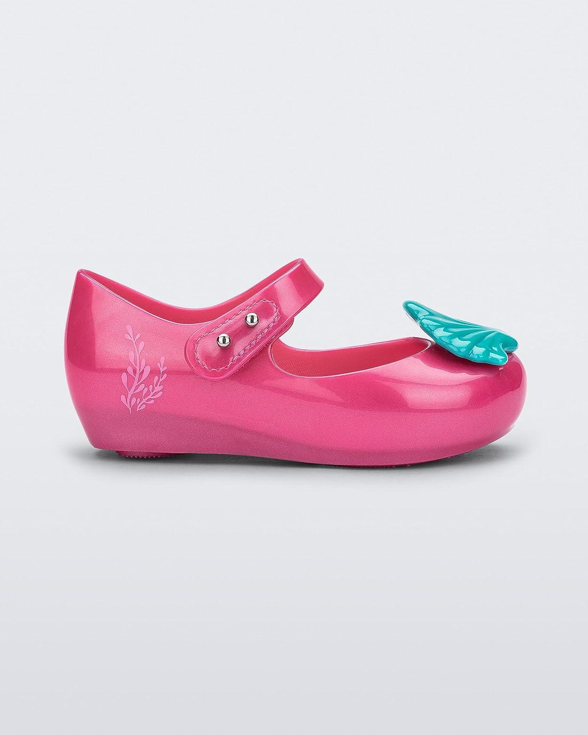 mini melissa Ultragirl Collection Mary Jane Flats for Toddlers and Babies - Comfortable & Cute Peep Toe Jelly Flat Shoes with Transparent Upper and Small Bow for Little Girls(Pink/Blue)